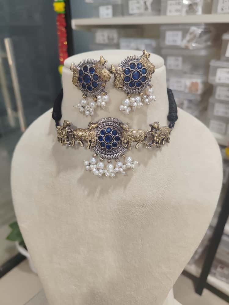 Be the first to review “NECKLACE SET CHOKER DUAL TONE-BLUE”