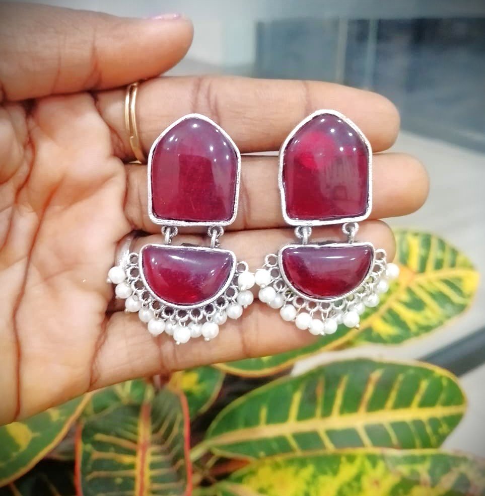 Be the first to review “STUD STONE EARRING-RED”